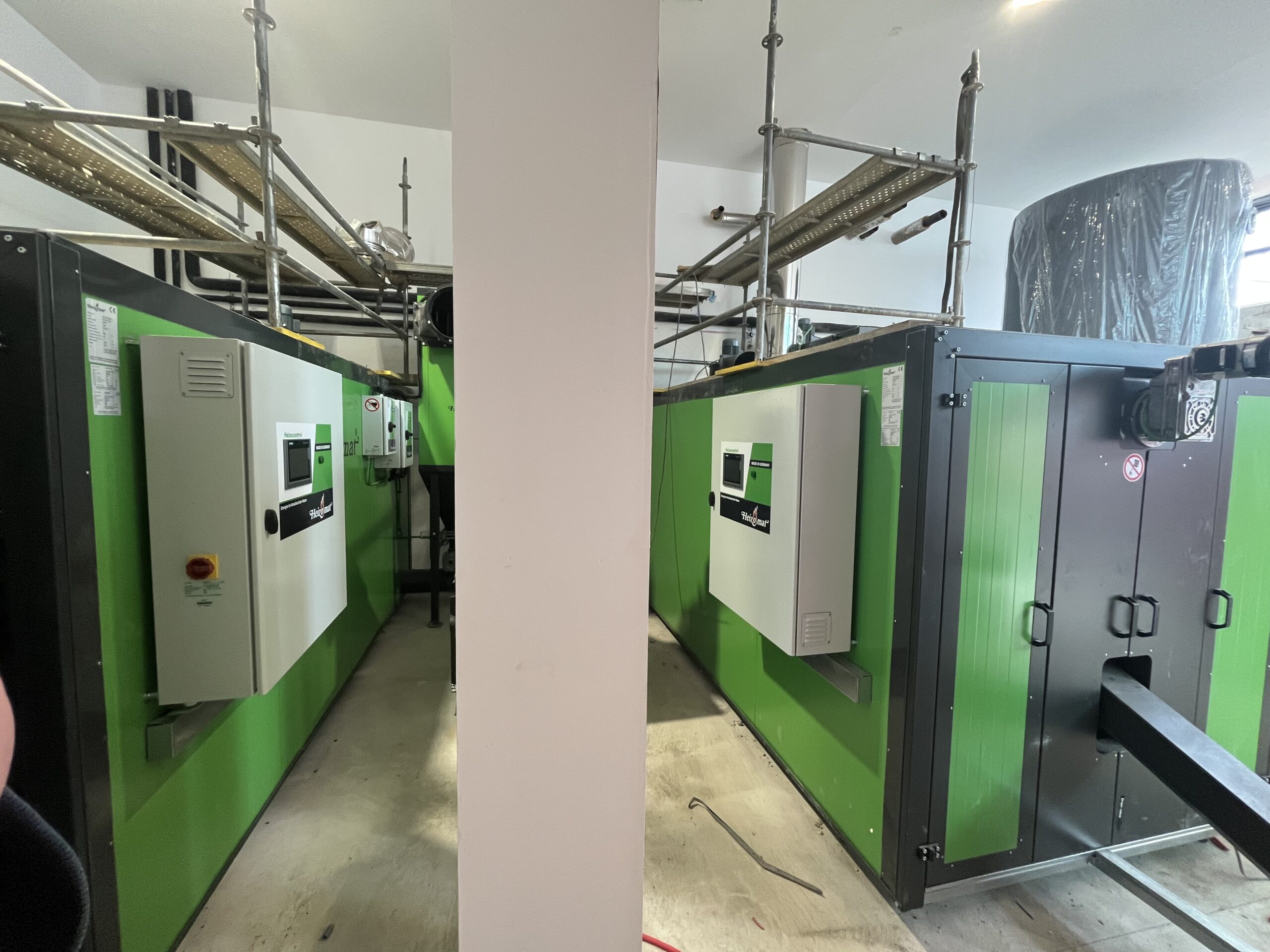 Instalación 2 calderas poli combustible Heizomat 500 kW cada una en red de calor de Navarra